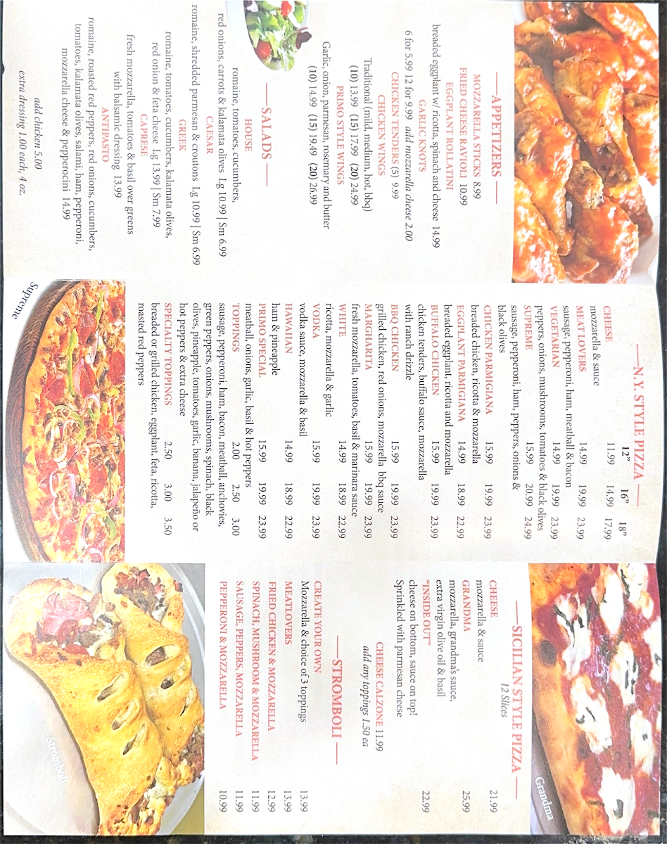 For pasta lovers, the menu features a delightful selection including spaghetti with marinara and hearty penne vodka that promises to satisfy. The star of the show, of course, is the pizza, which has garnered rave reviews for its perfect crust and rich toppings that transport you straight to the streets of NYC. Whether for a casual dine-in or takeout, Primo Pizza ensures an experience filled with warmth, great taste, and a touch of warmth from its friendly staff.